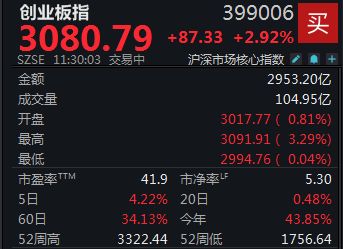 10月21日,大盤高開后單邊上行,創業板指強勢領漲。截至上午收盤,上證指數漲1.2%報3910.13點,深證成指漲1.97%,創業板指漲2.92%,北證50漲1.63%,科創50漲2.13%,中證A500漲1.6%,A股半日成交1.16萬億元。