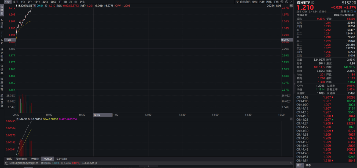 全市場唯一煤炭ETF(515220)大漲超2%,當前規模超130億元,感興趣的投資者或可借道煤炭ETF(515220)捕捉煤炭板塊機遇。