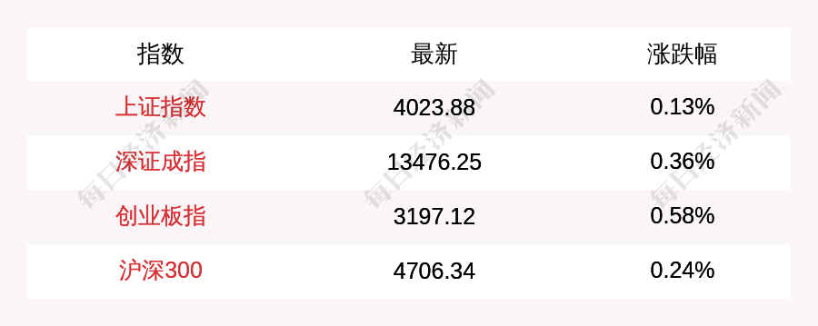 每經AI快訊:北京時間11月11日,上證指數開盤上漲5.28點,漲幅為0.13%,報4023.88點;深證成指開盤上漲48.64點,漲幅為0.36%,報13476.25點;創業板指開盤上漲18.29點,漲幅為0.58%,報3197.12點;滬深300開盤上漲11.29點,漲幅為0.24%,報4706.34點。