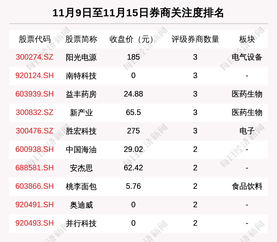 從券商對個股的關注程度來看,有27只個股獲得多家券商關注,券商關注數量排名居前的個股是陽光電源(300274.SZ)、南特科技(920124.SH)、益豐藥房(603939.SH)。