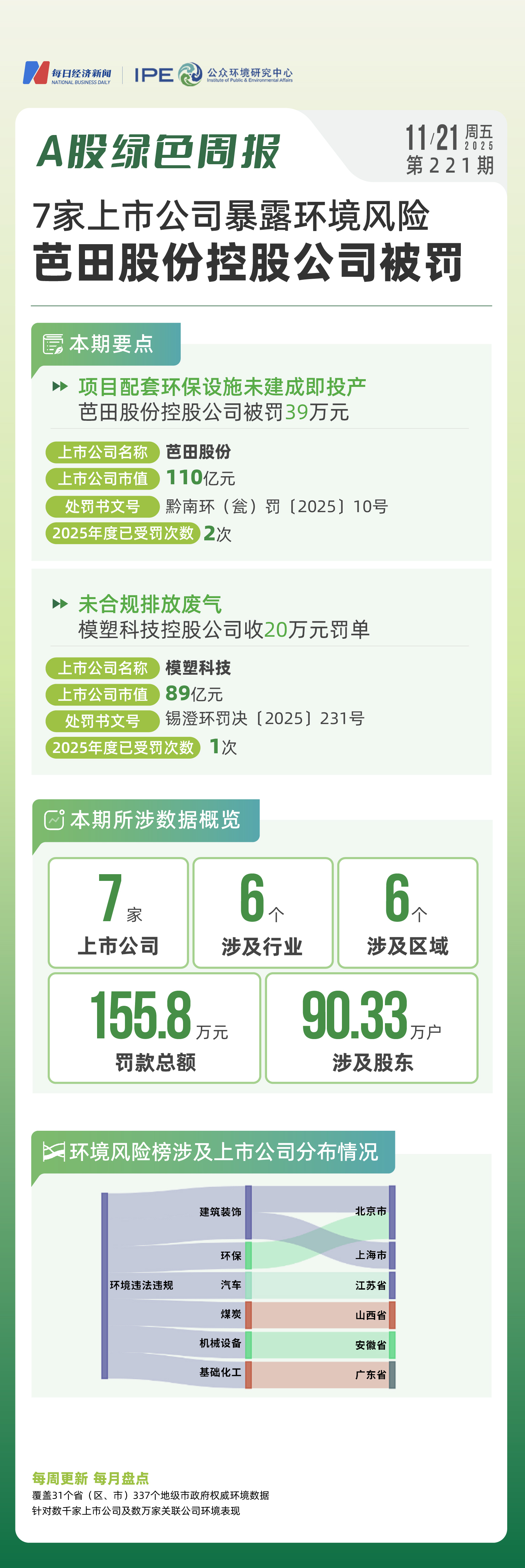 2025年11月第三周,哪些上市公司的環境保護與信披責任亮起了紅燈?且看A股綠色周報第221期。