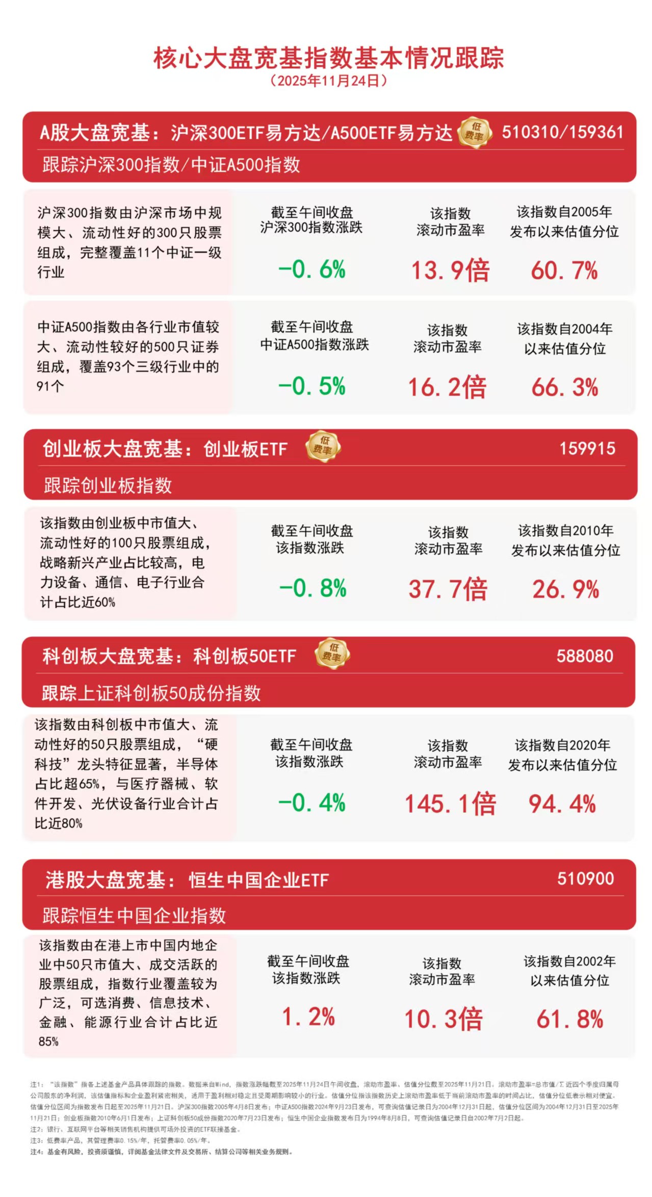 市場早盤高開低走,滬指跌0.3%,板塊題材上,商業航天等板塊漲幅居前,能源金屬、磷化工、煤炭等板塊集體調整;港股全線反彈,創新藥、互聯網、新能源車等板塊均有亮眼表現。截至午間收盤,中證A500指數下跌0.5%,滬深300指數下跌0.6%,創業板指數下跌0.8%,上證科創板50成分指數下跌0.4%,恒生中國企業指數上漲1.2%。